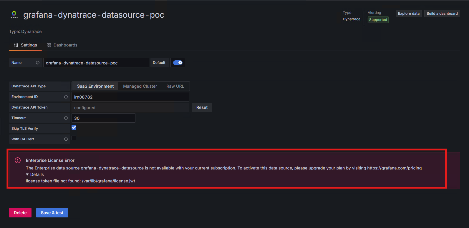 Why we cannot use Dynatrace Plugin in Grafana OSS post installing that as earlier it was working fine , can you suggest any alternative over OSS