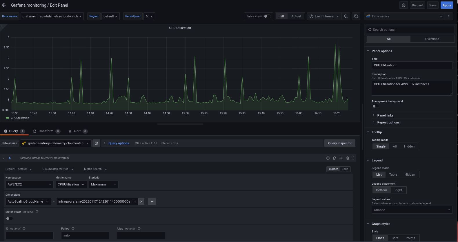 So after some research, I am quite sure the problem is that the AWS/EC2 metric CPUUtilization has no dimension named AutoScalingGroupName . Consequently, we can’t filter on the AutoScalingGroupName for instances’ CPUUtilization .
