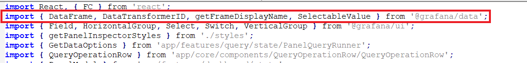 In the InspectDataOptions.tsx file I can see it is pointing and getting some inputs from ‘@grafana/data’.