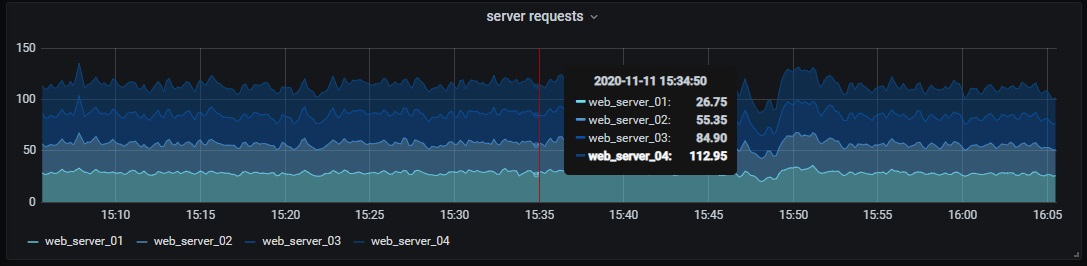 I would like to know how to go about extracting the data that popped up when the mouse is hovered over a certain time frame inside a graph panel. Using the demo site as an example, I would like to extract all the web server names and their values at a specific time from Grafana.