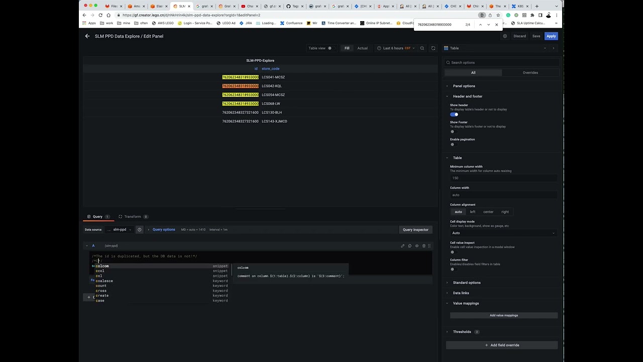 Grafana table chart issue, show duplicated big int value when pull data from the MySQL.