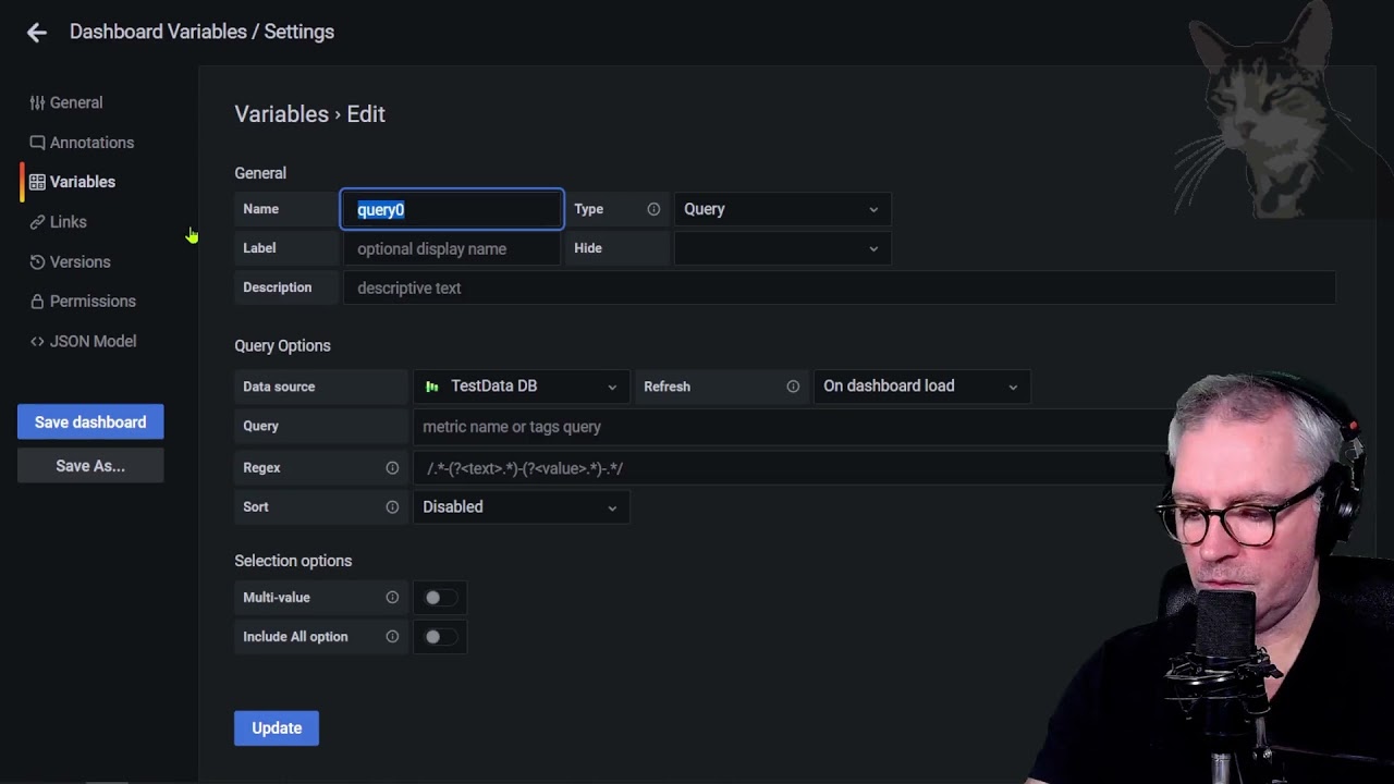 I go to the dashboard that I want to add a variable too. I create the variable using the following param using SimpleJSON as my API.