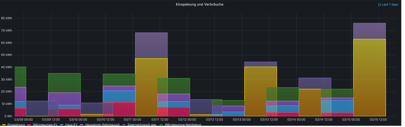 Another stack could be “Verbrauch” (Energy consumed) and “Einspeisung” (Energy overhead that was returned to the public network).