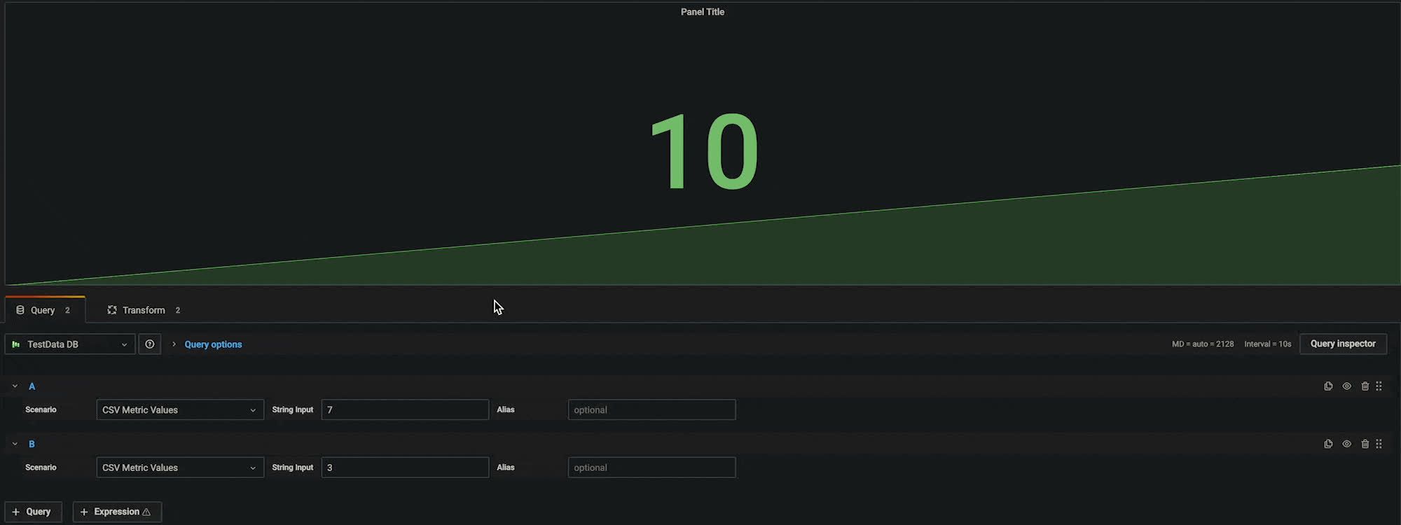 I created a panel and 2 queries.