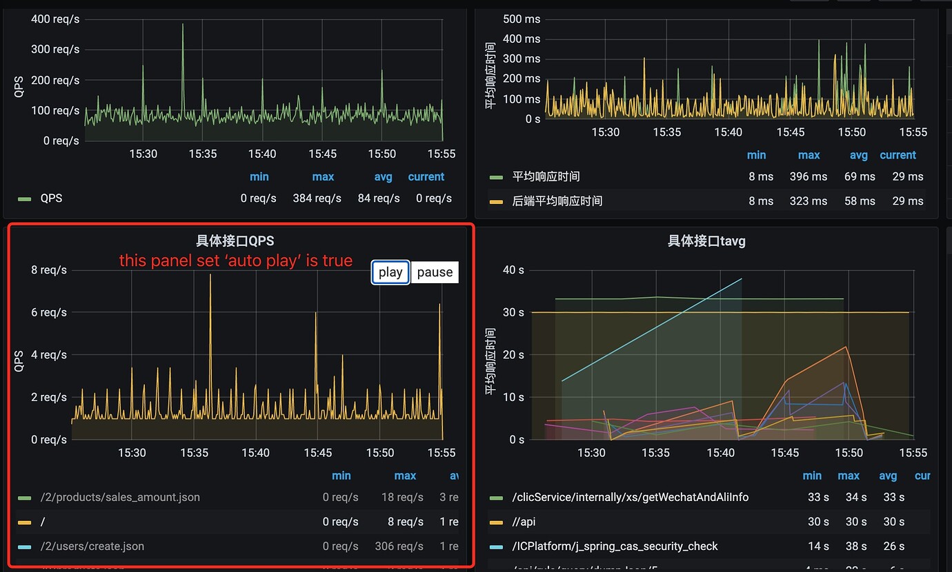 1). Add ‘auto play’ option for graph legend . If it is checked, the graph instance will has the automatic change metrics function . If it is unchecked, the graph will not has the function.
